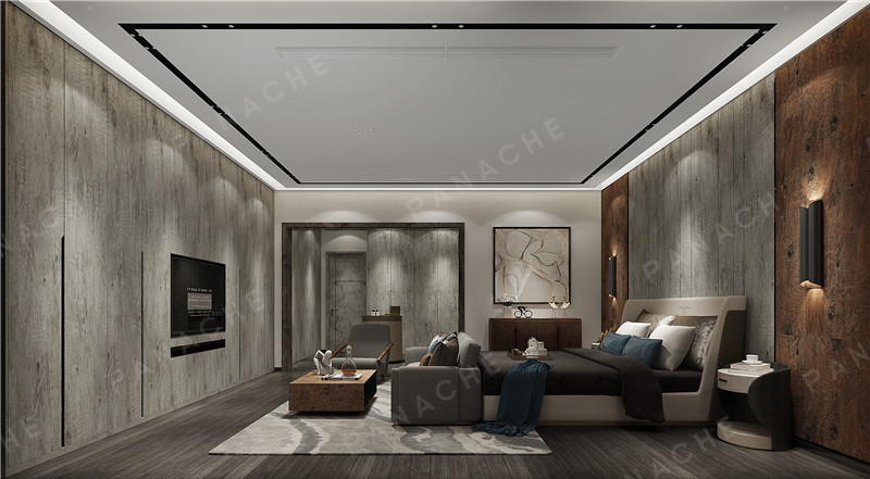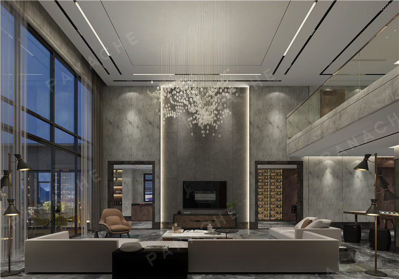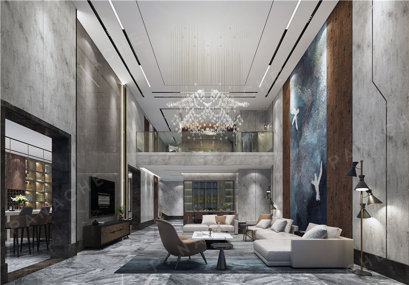 本案例堅持文化性的原則,將別墅打造成最具有文化底蘊,親近自然的別墅。室內(nèi)的設計,延續(xù)了“自然、隨性、簡潔、舒適”的八字理念,造型簡潔,張弛有度。裝飾材料以古船木、大理石為主的品擇金屬木飾面,且色調(diào)以灰白褐色系為主,再加上寬敞的客廳空間和開放式的廚房,使整體氛圍彰顯“輕奢主義”,內(nèi)斂又不失個性,舒適又不失美觀。
