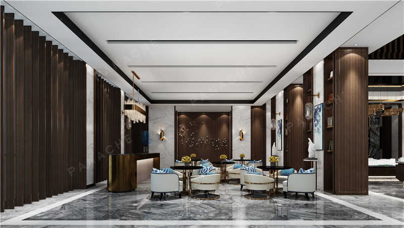 設計空間:房地產(chǎn)售樓部 設計風格:新中式 以現(xiàn)代之形抒寫東方之意??臻g中所有符號語言均是設計的表象表達,與其回歸東方的精神內(nèi)里緊密相依,共同營造清朗安靜、文雅和暢的場景。 大堂空間以簡飾繁,線條明朗,呈現(xiàn)出大道至簡、清遠悠長的東方氣韻。軟裝布局豐富而有序,充滿了連貫性,利用柱子來做成裝飾書架,最終將洽談區(qū)打造成了一個休閑放松的環(huán)境,并在這種輕松愉悅的環(huán)境下完成銷售工作。 品擇金屬木飾面將傳統(tǒng)中式的提煉和升華,也是對傳統(tǒng)中式的尊重,把復雜的空間元素簡練,給人一種沁潤、意墨之境。 |
