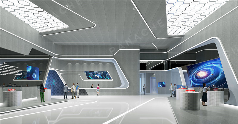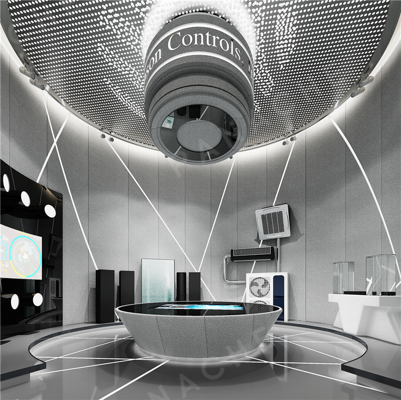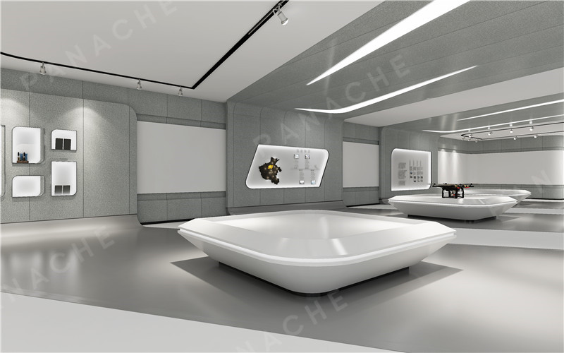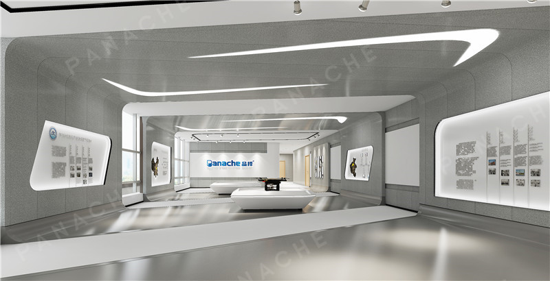 原建筑的兩層空間,重組空間的秩序,有機分割成錯落層空間。圓形空間發(fā)布區(qū)、產(chǎn)品展示等功能。引人注目的空間中大量使用鋁墻板弧形造型。同時解決了整體空間灰冷過“硬”的過渡關(guān)系。沿著展廳出來就是公眾休息區(qū),人與人思想創(chuàng)意的碰撞、中空區(qū)域上藝術(shù)裝置與光影的對話、思想上的交織,它們互為一體,相互依存。減少不必要的設(shè)計程序,隱藏各種細節(jié)處理。盡可能地降低它的雜質(zhì),有效提升空間使用??諝饧词强諝?,墻即是墻,設(shè)計讓每一物體都有充分的重量以及隱匿的可能。