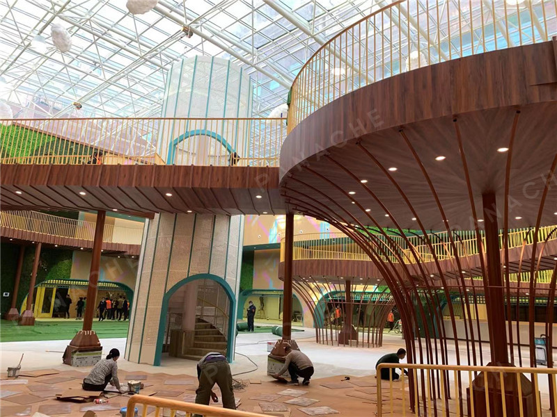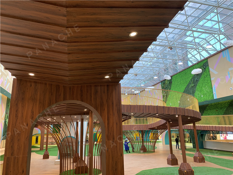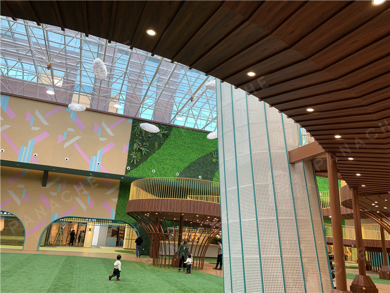 ![]() 豎紋黃檀木紋金屬木飾面 | 項目:遼寧中興沈陽商業(yè)大廈兒童樂園改造項目 產(chǎn)品:品擇金屬木飾面 “眼看著陽光明媚,樹木忽然間長滿了葉子,就像電影里的東西長的那么快,我就又產(chǎn)生了那個熟悉的信念,覺得生命隨著夏天的來臨,又重新開始了。” 似乎一切美好的童年記憶,都在夏天里萌發(fā)。設計師選取綠色植被為基調,搭配品擇豎紋黃檀木紋金屬木飾面,仿佛把自小被困于城市中央的孩童扯回鄉(xiāng)村森林,回歸最真摯的自然生活,感受生命的真諦與生生不息的輪回。將生活帶給你的如檸檬的酸楚,釀成猶如檸檬汽水般的甘甜。 弧形設計與黃色護欄,走廊天花自成一體,在兒童暢游嬉樂的同時,如同父母堅實的臂彎緊緊呵護成長。拱門、鳥籠式柱體、透光天花的設計,百變的造型體現(xiàn)在2000平方米的空間中,捉迷藏、跑跑鬧鬧、老鷹捉小雞等各種游戲都可盡情玩耍,享受童趣童樂。 兒童樂園選取品擇壓紋淺色豎木紋金屬木飾面,不僅在設計上考慮到小朋友的視覺所需,更在感官上滿足到他們的成長需求:0甲醛、抗菌(抑制細菌生長)的特性,為少年兒童塑造健康的成長環(huán)境,微風輕撫,芳香四溢,沁人心脾,讓城市的喧囂在綠茵中沉淀,回歸自然的純樸。 |