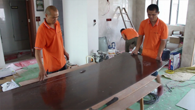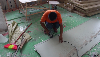 6.裝骨架7.裝板8.背面上膠9.輕敲調整