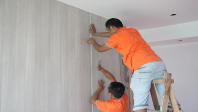 (1)基體(細木工板、石膏板、或水泥墻)安裝必須牢固、平整、接縫、膩子處理平實、無開裂現(xiàn)象;基本表面清潔,無污染。